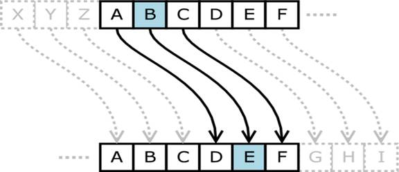 reprezentata utilizand aritmetica modulo transformand intai literele in cifre