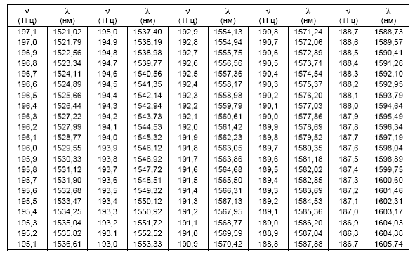 2.3.1.1 Lungimile de unda de transmisiune standart