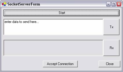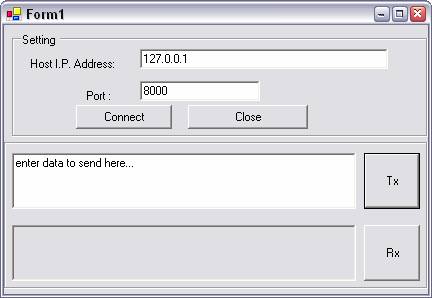 Dupa ce precizam acesti parametri trebuie sa ne conectam la server. Pentru a deschide conexiunea apasam butonul Connect, iar pentru a o închide utilizam butonul Close. Pentru a trimite date serverului acestea trebuiesc introduse în câmpul de lânga butonul Tx. Daca apasam butonul Rx aplicatia se va bloca daca nu ava avea date de primit.