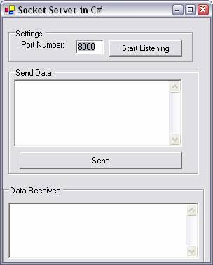 Pe partea de server trebuie sa fie un socket numit socket Listner care asculta un anumit numar de port pentru conexiuni de la clienti. Atunci când clientul realizeaza o conexiunea serverul trebuie sa accepte aceasta conexiune si apoi, pentru ca serverul sa trimita si sa primeasca date la si de la clientul conectat, trebuie sa comunice cu respectivul client prin socketul primit la acceptarea conexiunii. Urmatoarele linii de cod evidentiaza modul în care serverul asculta pentru conexiuni si le accepta: