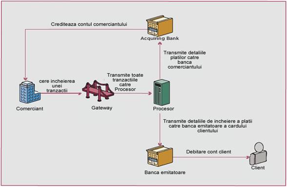 Figura : Transferul fondurilor din contul de card al clientului în contul comerciantului.