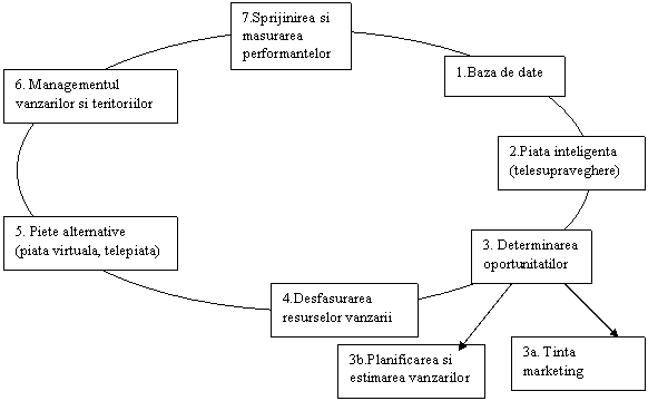 Managementul vanzarilor . Directorul de vanzaritrebuie sa planifice, sa urmareasca si sa sprijine performantele vanzatorilor aflati in subordinea sa. Asa ca in cele mai multe firme sisteme bazate pe calculator produc rapoarte de analiza a vanzarilor, care il ajuta pe directorul de vanzari sa dezvolte programe care sa imbunastateasca rezultatele vanzarilor. In figura urmatoare este descris ciclul pe care trebuie sa urmareasca un raport de vanzari.