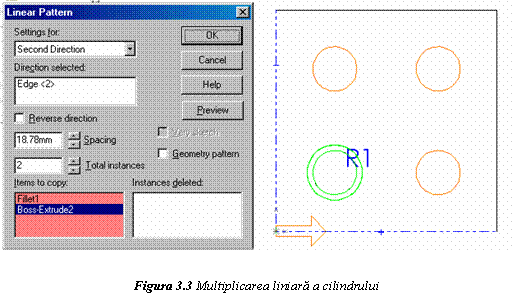 Linear Pattern - permite multiplicarea de tip matrice liniara a unui reper