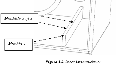 Muchia 1 se va racorda cu o raza de 2mm, iar muchiile 3 si 4 cu raze de racordare de 0,5mm, dupa cum este prezentat în