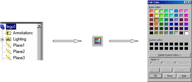 Putem schimba culoarea cubului. Pentru acesta se selecteaza numele modelului din Organizator. Se alege culoarea portocalie. Modelul va fi acum portocaliu.