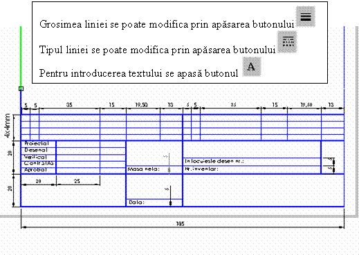 Nota: Pentru editarea chenarului si a indicatorului se folosesc aceleasi reguli ca si la schitele realizate pentru un model solid. Se pot folosi comenzile de desenare 2D precum si cele auxiliare (TRIM, EXTENT, MIRROR, CHAMFER etc.).