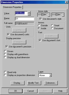 Pentru a modifica modul în care apar pe desen cotele se selecteaza cota si se apasa butonul din dreapta al mouse-ului. Se alege optiunea Properties care permite: