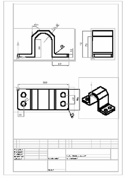 În continuare, se deschide documentul care contine modelul 3D si se apasa butonul din stânga al mouse-ului atunci când cursorul se afla pe modelul solid. Ca urmare, se insereaza automat desenul solidului în cele trei vederi pe foaia de lucru de tip Drawing.