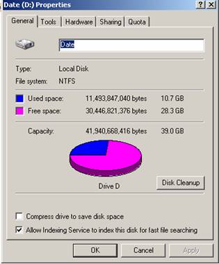 Dimensiunea partitilor (gradul de ocupare) poate fi aflatǎ parcurgānd urmǎtorii pasi: īn fereastra My Computer se apasa click dreapta pe partitia care ne intereseaza si se selecteazǎ Properties (Proprietǎti). Used space (spatiul utilizat) se refera la numarul de GB ocupati si Free Space (spatiu liber) la numarul de GB liberi.