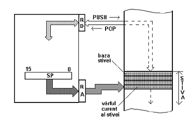 - numerator special - indicator de stiva SP, cel care este automat actualizat cu adresa varfului stivei curente