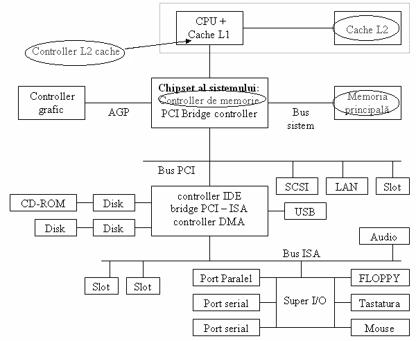- Memoria este localizata pe bus-ul local (numit uneori bus de memorie, bus sistem, bus host (gazda) procesor sau frontside bus).