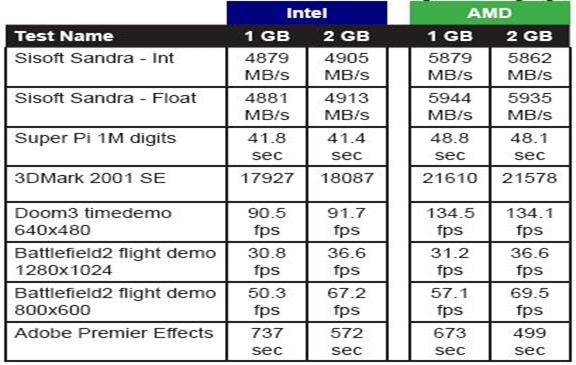 De când memoriile dual channel PC3200 au aparut pe piata în prima parte a anului 2002, 1 GB RAM a devenit standardul pentru computerele performante. Acest test arata ca pentru multe aplicatii 1 GB este înca punctul limita, oricare ar fi platforma computerului.