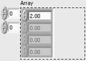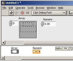 La eliberarea butonului mouse-ului, elementul scalar apare în interiorul elementului tablou, acesta din urma modificându-si corespunzator dimensiunile. În diagrama, terminalul elementului scalar dispare, iar terminalul elementului tablou capata culoarea, textul si grosimea de chenar corespunzatoare datelor pe care le va manipula.