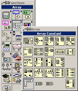Figura 8. Functii utilizate pentru lucrul cu tablouri în LabVIEW.