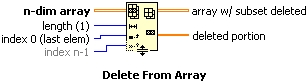 Functia Delete From Array sterge dintr-un tablou o portiune de marime specificata (intrarea length, cu valoare implicita 1), începând de la un indice specificat (implicit ultimul element).