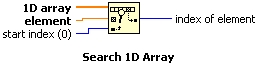 - Functia Search 1D Array cauta o valoare într-un tablou unidimensional, începând de la un indice de start specificat, si returneaza indicele elementului gasit. Daca elementul cautat nu se afla în tablou, atunci functia returneaza valoarea -1.