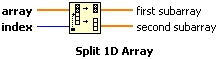Functia Split 1D Array divide un tablou unidimensional în doua tablouri, locul în care se efectueaza divizarea fiind determinat de valoarea conectata la intrarea index a functiei.