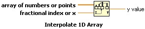 - Functia Interpolate 1D Array realizeaza o interpolare pe valorile tabloului de la intrarea array of numbers or points.
