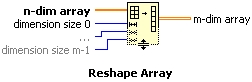 - Functia Reshape Array modifica numarul de dimensiuni ale unui element de tip tablou. De exemplu, un tablou unidimensional cu sase valori poate fi transformat într-o matrice cu trei linii si doua coloane, sau invers.