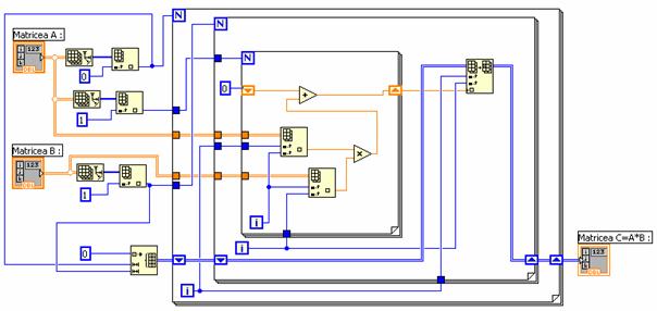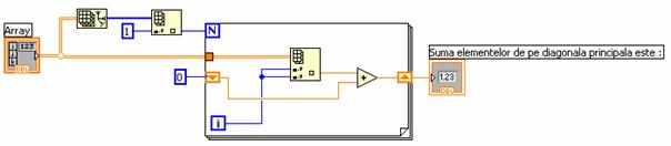 elementelor de pe diagonala principala. În interiorul acestui ciclu se va introduce o functie Index Array pentru extragerea câte unui element de pe diagonala principala si o functie Add pentru realizarea sumei elementului curent cu elementul anterior extras de pe diagonala principala. Pentru a putea realiza suma elementului curent cu elementul anterior extras din matrice, ciclul FOR va fi prevazut cu un set de registre de deplasare, iar primul element extras se va aduna cu constanta 0.