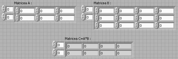 - doua tablouri în care se vor introduce câte un obiect Num Ctrl, urmând ca apoi sa se creeze matricile de dimensiuni n x m, respective m x p;