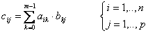 matrice C de dimensiuni n x p. Aceasta matrice va reprezenta rezultatul înmultirii.