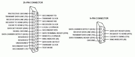 Desi RS-232 specifica un conector cu 25 de pini, trebuie mentionat ca deseori nu este folosit acest conector. Aceasta datorita faptului ca cele mai multe aplicatii nu au nevoie de toate semnalele definite si deci un conector cu 25 pini este mai mare decât ar fi necesar. Se folosesc alte tipuri de conectori, cel mai popular fiind cel cu 9 pini DB9S, care este de asemenea ilustrat in figura 2. El este suficient pentru aplicatiile uzuale (cum ar fi un modem), permitând transmisia si receptia semnalelor necesare acestor aplicatii.