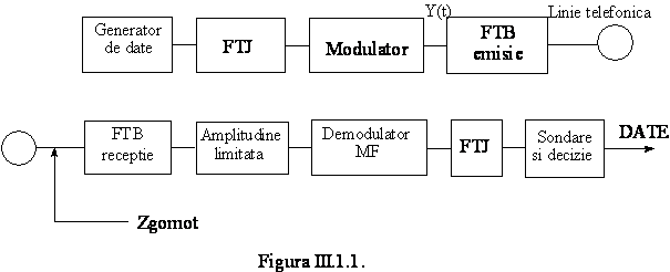 Schema bloc a unui sistem de transmisiuni de date cu medie frecventa este prezentata in figura III.1.1.