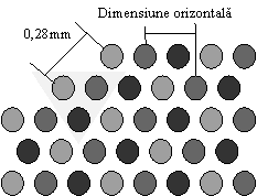 Distanta īntre pixeli - mai mare de 0,28mm - nu permite sporirea calitatii ca īn cazul celorlalte doua tehnologii.