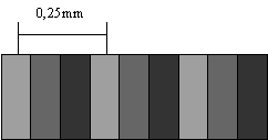 Suprafata fosforescenta este organizata īn dungi verticale, dimensiunea verticala a pixelului fiind determinata de fluxul de baleiere. Aceste dungi se pot desparti prin dungi negre foarte subtiri.