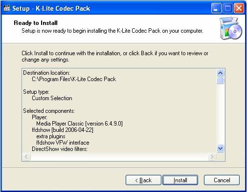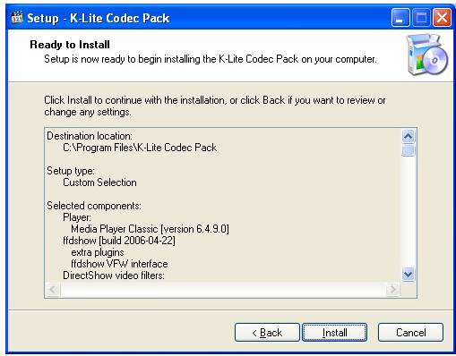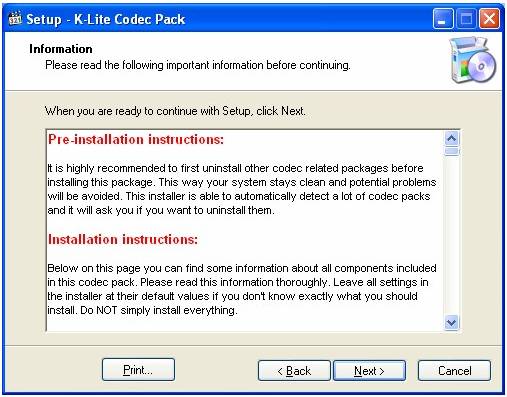 Faceti clic pe next si cititi continutul pachetului de codecuri.