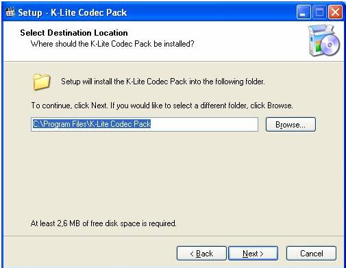 Clic pe next si alegeti calea unde vreti sa instalati K-Lite Codecpack Full