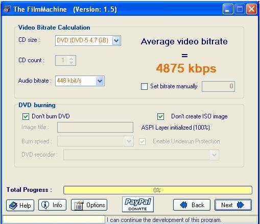Exista de asemenea si o optiune pentru "arderea" DVD-ului obtinut cu TFM.