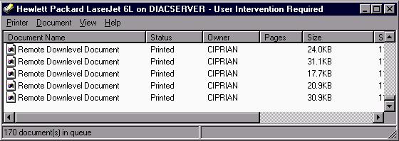 Executati dublu clic pe pictograma Printer de pe bara de sarcini din Windows, iar pe ecran va fi afisata coada de asteptare a imprimantei, ca in figura 10.4.