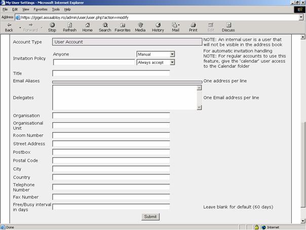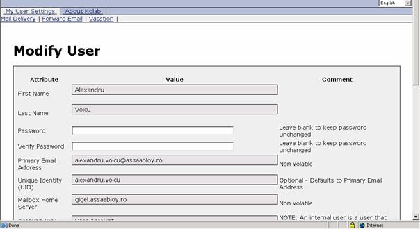 My User Settings reprezinta link-ul catre pagina in care sunt datele contului Dvs de mail ce pot fi modificate.