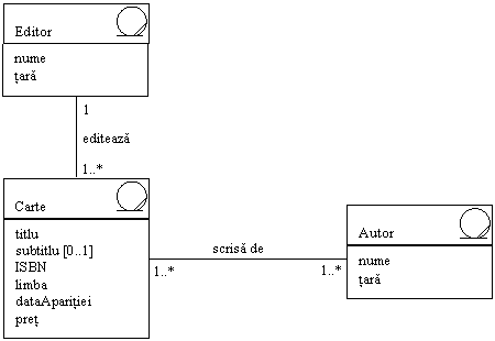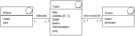 Daca adaugam acestor noi concepte pe acelea cunoscute deja de carte, autor si editor, putem reprezenta diagrama claselor conceptuale pentru "Întretinerea catalogului" ca în figura 2_6: