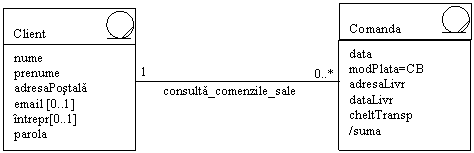 În figura 2_5 este reprezentata diagrama claselor conceptuale pentru cazul de utilizare Consultarea comenzilor în curs. Dupa cum se vede, clientul, folosindu-se de parola, poate accesa toate comenzile sale aflate în curs de efectuare.