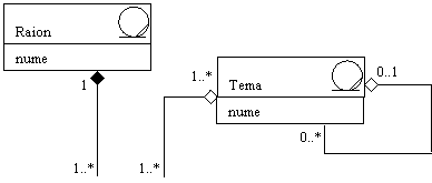 Între raion si carte exista un semn de compunere (romb plin), în sensul ca orice carte trebuie sa apartina unui raion. De asemenea, raioanele trebuie sa figureze în catalogul nostru (unul singur), prin urmare o relatie de compunere leaga si raionul de catalog.