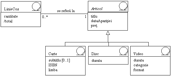 Aceasta solutie este reprezentata în figura 2_2. Observatie: Atributul /total al clasei Cos este diferit de atributul /total al clasei Linie Cos. Acesta este un exemplu clar de polimorfism: cele doua atribute difera prin faptul ca apartin unor clase diferite.