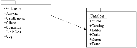 Cele doua pachete, care apar în figura 2_10, verifica principiile unei mari coerente interne si a unui slab cuplaj extern. O singura asociere traverseaza cele doua grupe de clase si anume aceea existenta între Carte si LinieCos. Daca împingem analiza mai departe, ne dam seama ca aceasta asociere este numai unidirectionala. Într-adevar, o LinieCos depinde de Cartea selectata de client, dar definirea unei carti nu depinde de ceea ce va fi scris ulterior în linia cosului sau. Dependenta dintre cele doua pachete este, asadar, redusa la minimum.