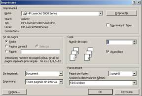 În aceasta fereastra se pot face toate setarile (imprimanta, care pagini doriti sa le tipariti, numarul de copii) dupa care trebuie sa executati un clic pe butonul OK. Bineînteles imprimanta trebuie sa fie conectata si instalata corespunzator.