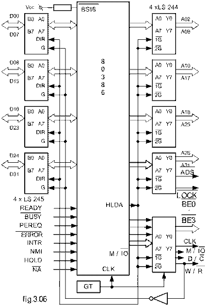 Semnalele de comanda catre microprocesor se transfera (aplica) direct, iar cele de iesire sunt amplificate, asa cum rezulta din schita explicativa din figura 3.04.