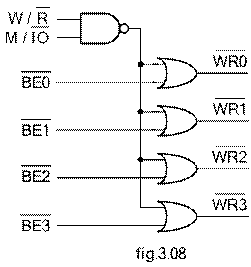 Schema bloc a circuitului pentru generarea semnalelor de scriere în memorie se prezinta în figura 3.07. De altfel ea este "transpunerea bloc" a frazelor anterioare. Schema de principiu se prezinta în figura 3.08.
