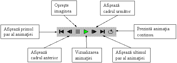 Bara de elemente pentru Animator cuprinde o serie de butoane folosite pentru crearea, īnregistrarea, si vizualizarea animatiei realizate. (Fig. 14.1.a, b)