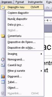 Fig 5. Crearea unui diapozitiv nou din bara de meniu