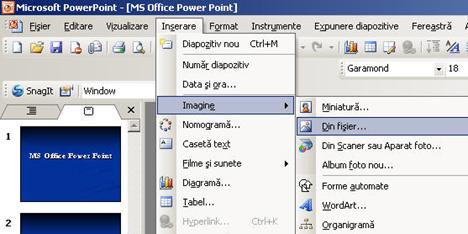 Fig. 13 Inserarea elementelor graficedin diapozitivul continut