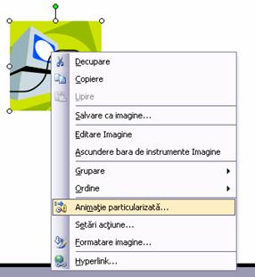 De pe elementul pe care dorim sa īl animam, se dǎ click dreapta de mouse si se selecteaza Animatie particularizata sau Setari actiune.