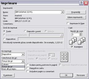 numai un anumit numǎr de diapozitive. Pentru o viziualizare generala a diapozitivelor se pot imprima