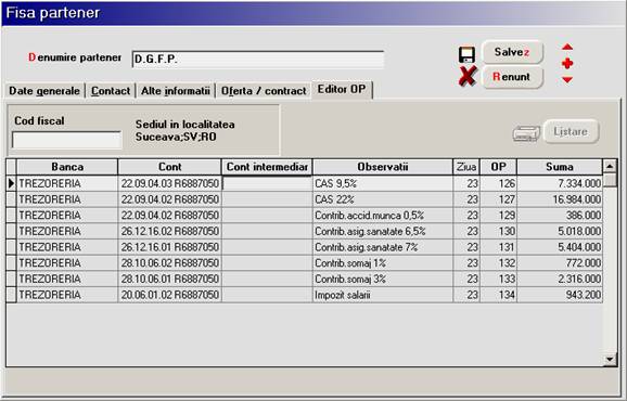 din nomenclatorul de parteneri "Editor Op"; se pot importa configurari