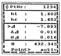 * Daca nu a fost introdusa nici o inaltime, atunci valoarea 0.000 este scrisa WI44! Inaltimea data a deviatiei este memorata in WI45!